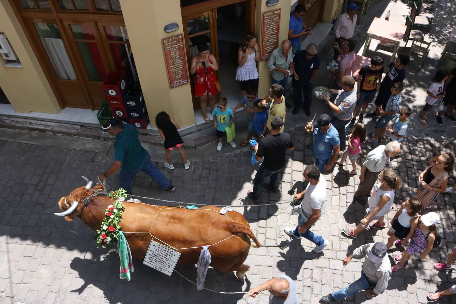 Έχει προηγηθεί η διαπόμπευση του ταλαιπωρημένου, πανικόβλητου και συνήθως δεμένου (παστουρωμένου) ζώου στο χωριό και ο άγριος σφαγιασμός του μπροστά στα μάτια εκατοντάδων κατοίκων και τουριστών, ακόμα και μικρών παιδιών. Δεν λείπει φυσικά ο «δίσκος» για τα χρήματα των πανηγυριστών και οι δεκάδες μικροπωλητές.