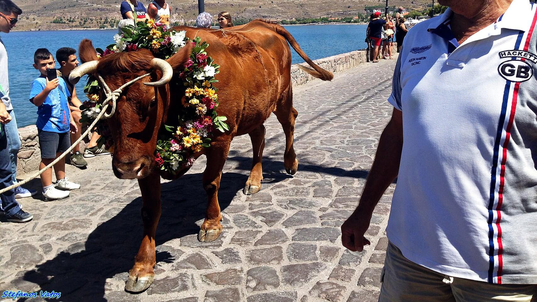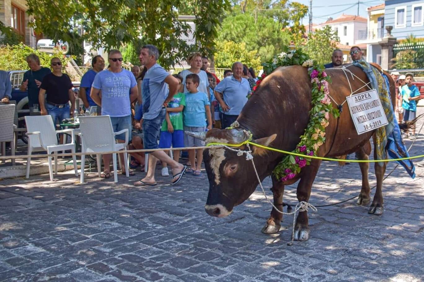 Στον Μανταμάδο της Λέσβου, κάθε άνοιξη γίνεται μεγάλο πανηγύρι προς τιμή του τοπικού προστάτη αγίου, του «Ταξιάρχη».  Την παραμονή της γιορτής πραγματοποιείται μαζική ζωοθυσία, που περιλαμβάνει κυρίως έναν ταύρο, αλλά και αρνιά, κατσίκια κ.ά.