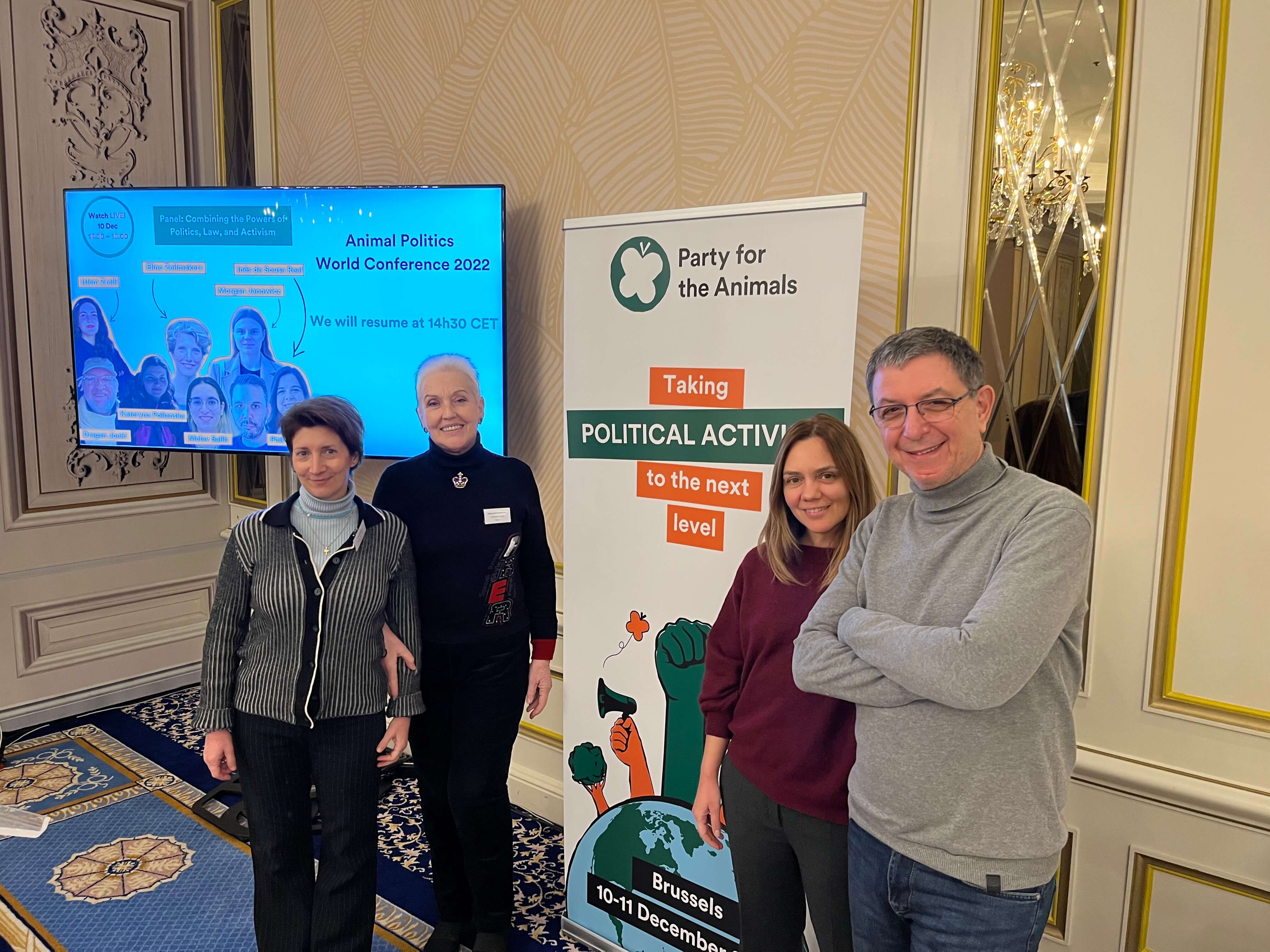 Το δελτίο τύπου του ελληνικού Κόμματος για τα Ζώα για τη διεθνή συνάντηση της Πολιτικής Φιλοζωίας το τριήμερο 9-11/12/2022 στις Βρυξέλλες Ολοκληρώθηκε την Κυριακή 11/12/2022 το ετήσιο συνέδριο του Animal Politics Foundation, του ιδρύματος στο οποίο συστεγάζονται πολιτικά όλα τα κόμματα της Πολιτικής Φιλοζωίας στον κόσμο. Φέτος το συνέδριο έγινε το τριήμερο Παρασκευή 9-Κυριακή 11/12/2022 στις Βρυξέλλες. Στη συνάντηση συμμετείχε για δεύτερη φορά αντιπροσωπεία από το ελληνικό Κόμμα για τα Ζώα (ΚΓΤΖ), αποτελούμενη από τους  Επικεφαλής του Νίκο Ράπτη και Λυδία Ψιλοβίκου και τα μέλη της ηγεσίας του Νταϊάνα Βουγέση και Νταϊάνα Φακιολά.