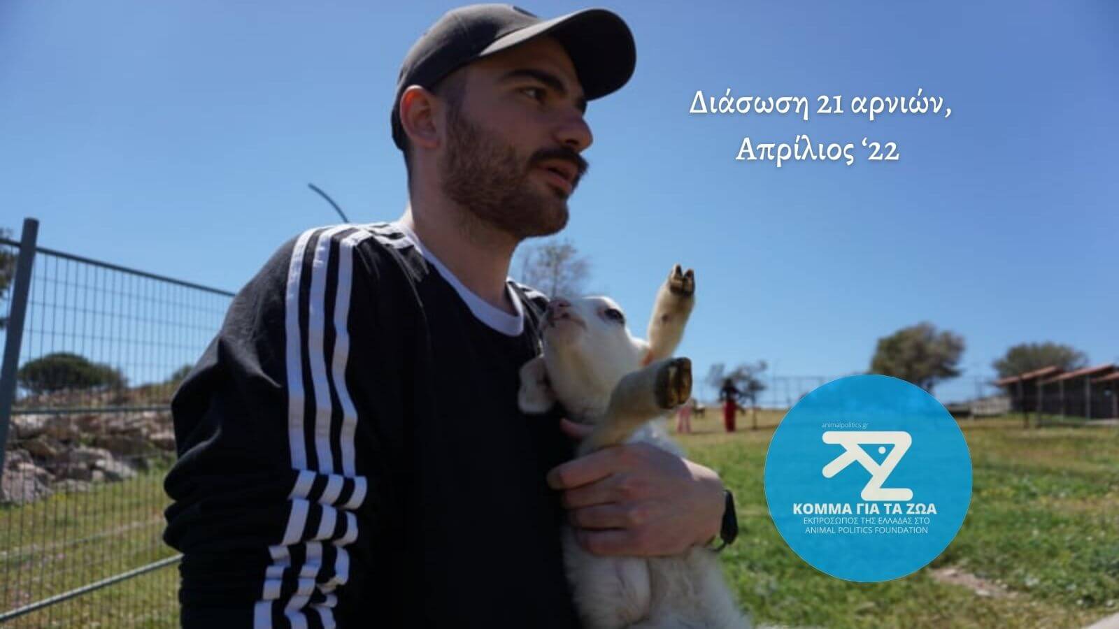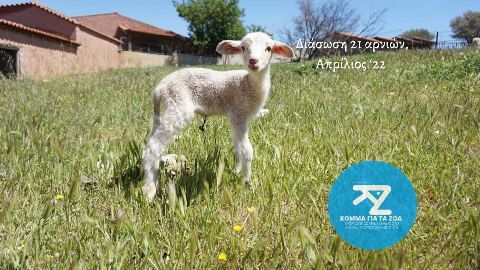 Με την πολύτιμη συνδρομή του A Promise To Animals, την Πέμπτη 20 Απριλίου 2022, ακτιβιστές από το Κόμμα για τα Ζώα κ.ά. διασώσαμε από κτηνοτροφική μονάδα της Αττικής είκοσι ένα αρνιά και τα μεταφέραμε σε καταφύγιο στην ίδια περιφέρεια, όπου θα τα φροντίζουν και θα τα προστατεύουν έως το τέλος της ζωής τους.