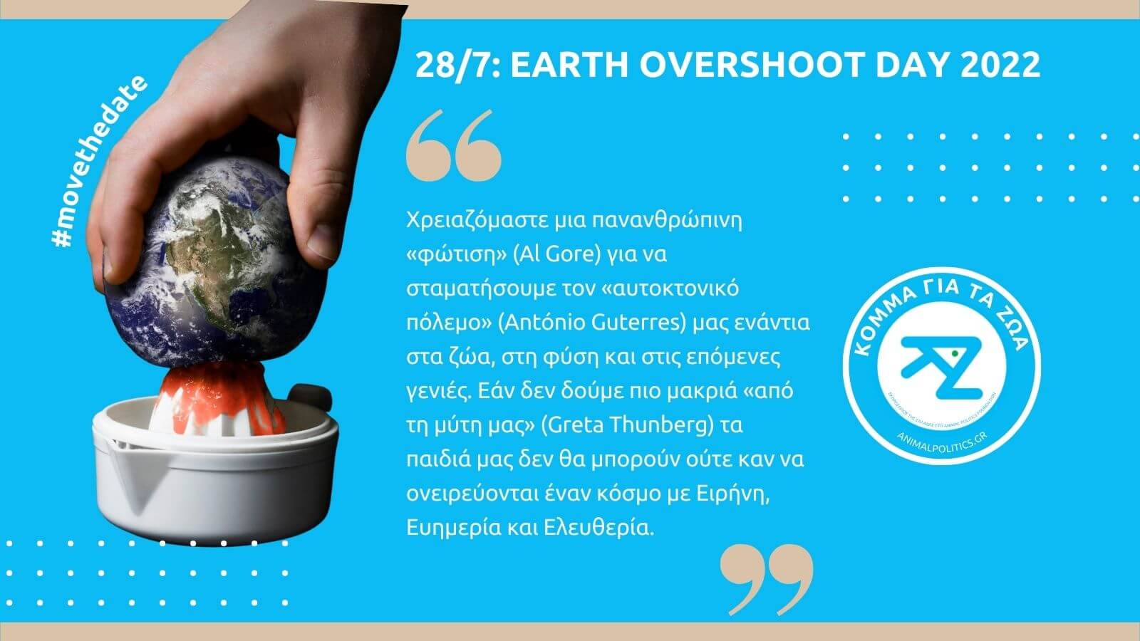 Το μήνυμα του Κόμματος για τα Ζώα για την Earth Overshoot Day 2022 #movethedate