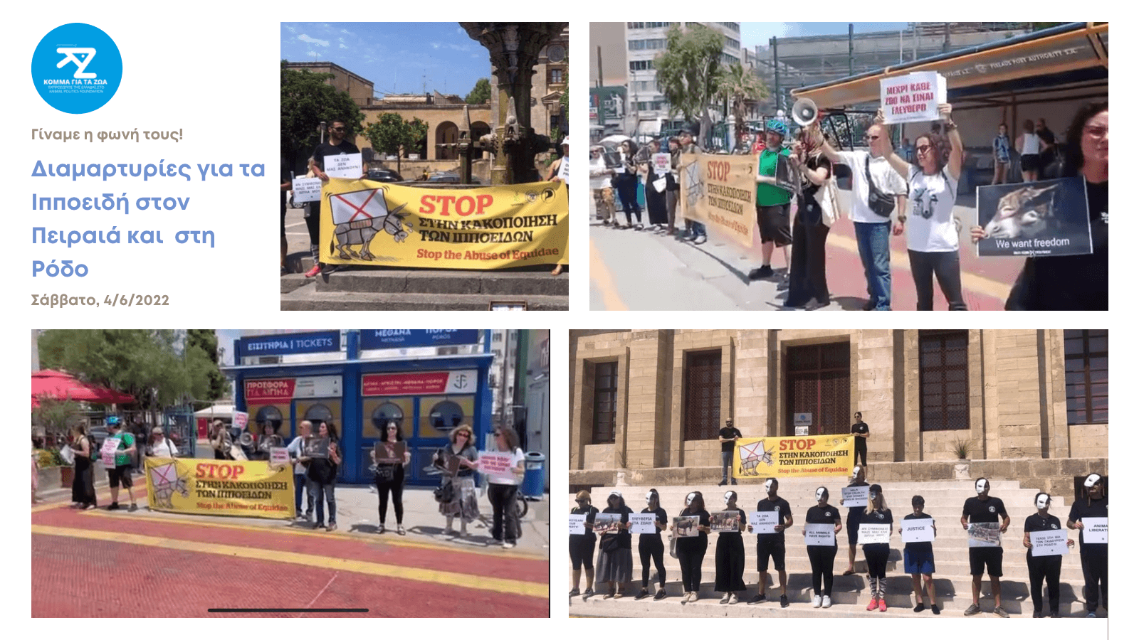 Στον Πειραιά και στη Ρόδο, οι φιλόζωοι κινητοποιήθηκαν και έγιναν η φωνή των ιπποειδών που κακοποιούνται στην Ύδρα και στην Λίνδο