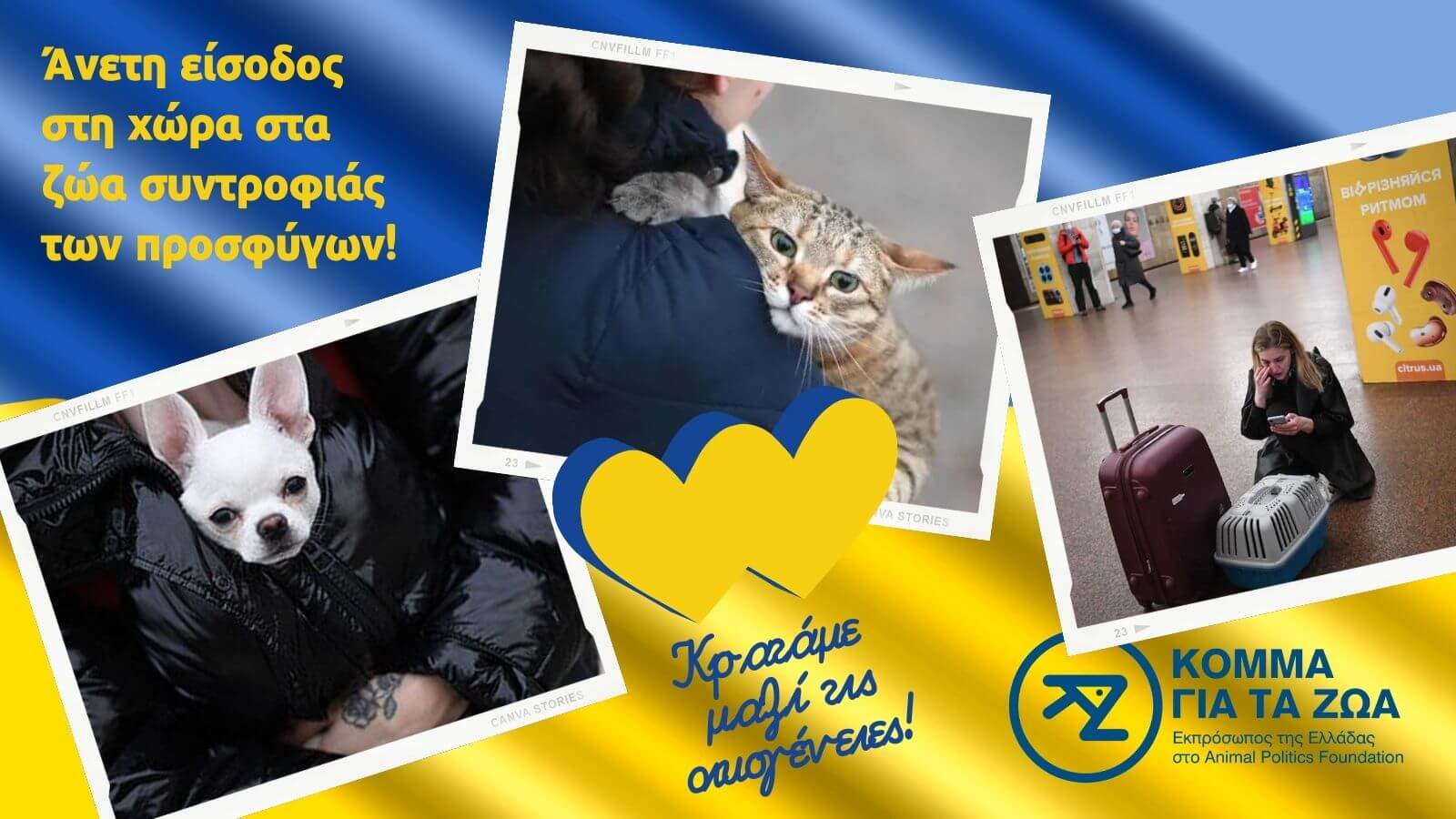 Η ελληνική κυβέρνηση να κρατήσει ενωμένες τις οικογένειες των προσφύγων από την Ουκρανία με κατ' εξαίρεση είσοδο των ζώων συντροφιάς