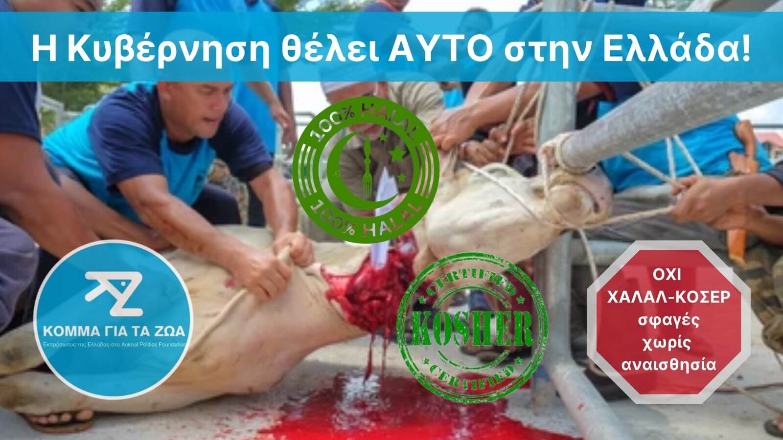 Το ελληνικό Κόμμα για τα Ζώα καλεί τους φιλόζωους σε αγώνα κατά της νομιμοποίησης της σφαγής ζώων χωρίς αναισθησία