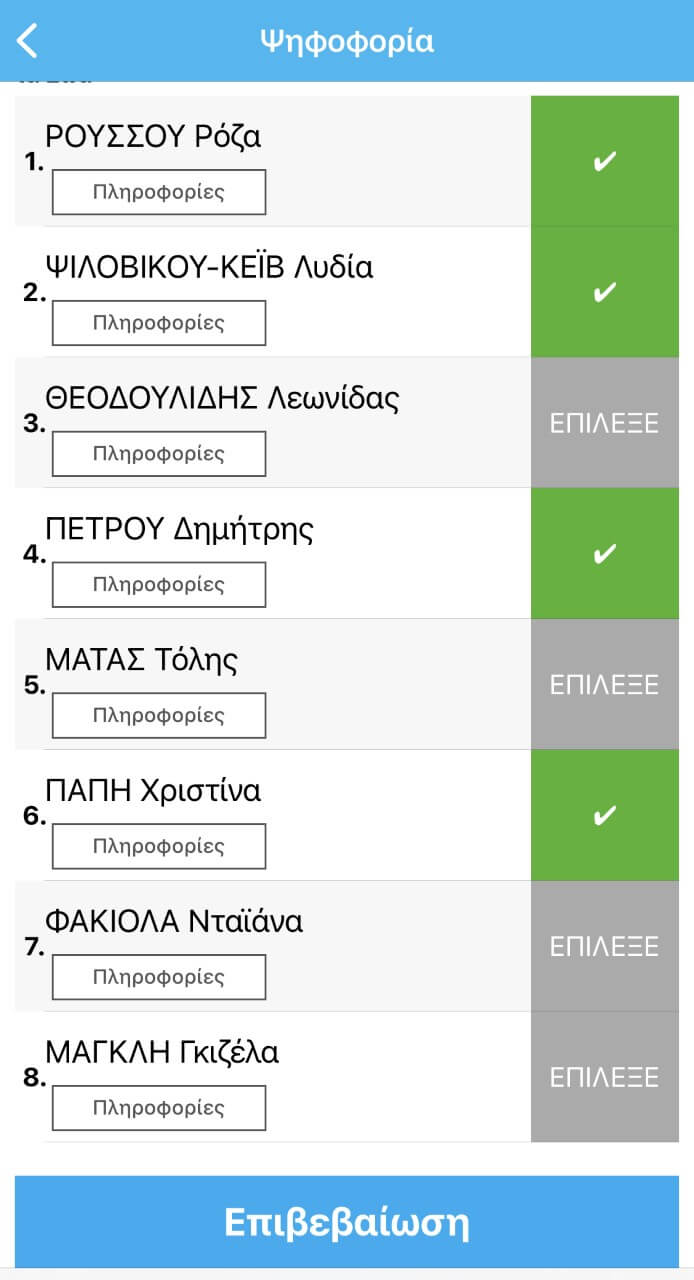 Εφόσον επιλέξουμε από έναν έως και έξι υποψήφιες/υποψήφιους,
