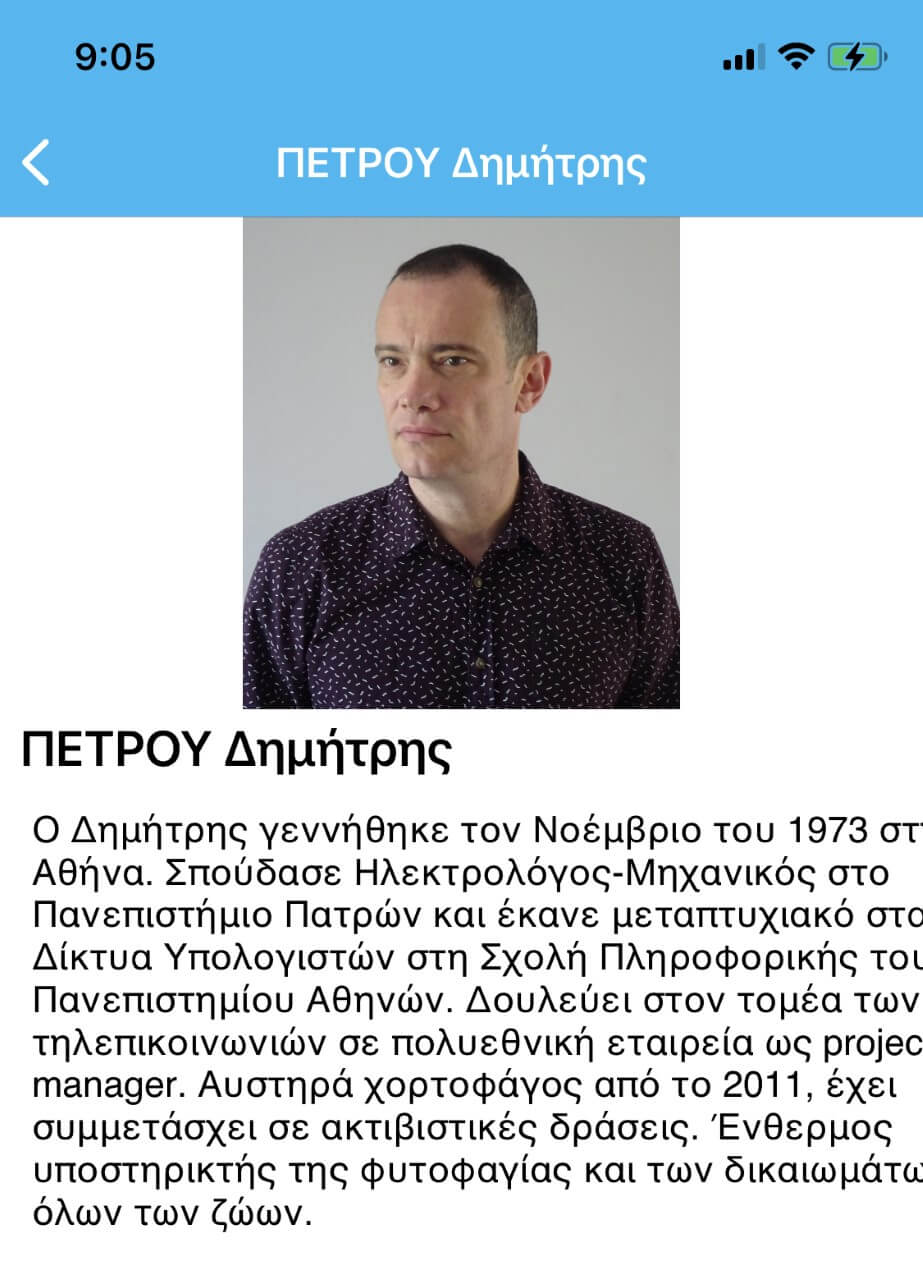στο επάνω μέρος της εφαρμογής Animal Politics