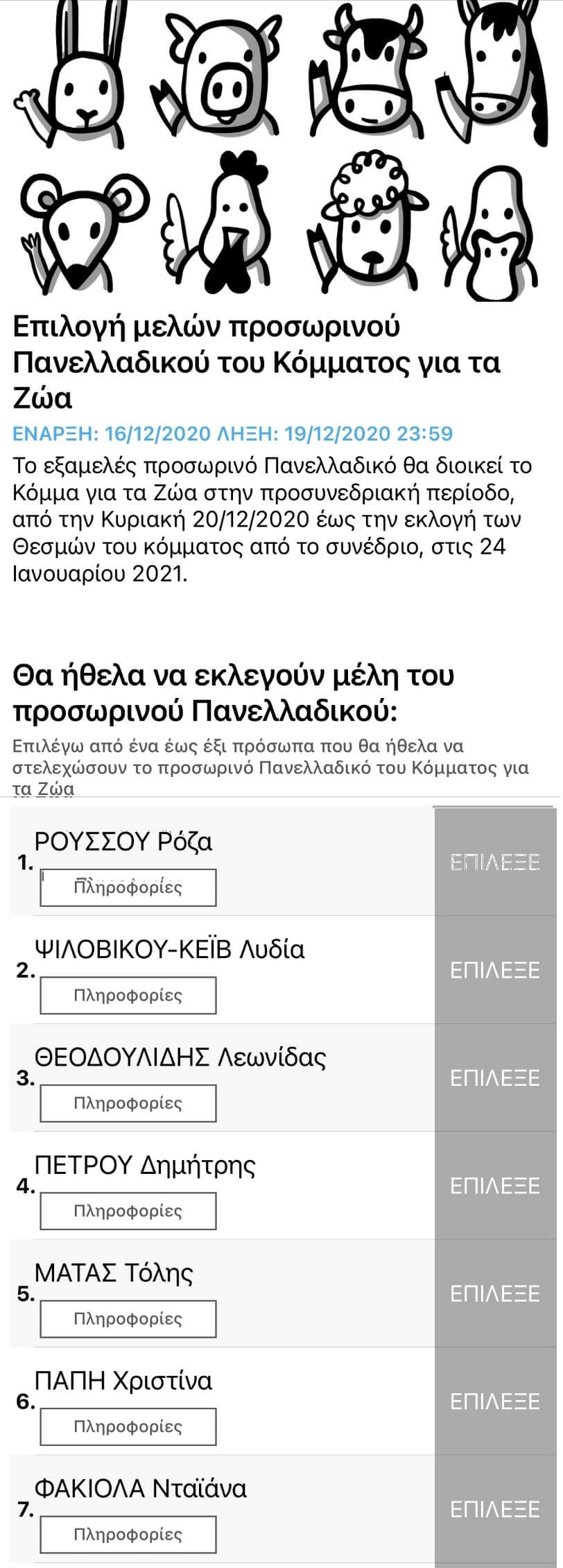 Οι επτά υποψήφιες και υποψήφιοι για το προσωρινό Πανελλαδικό του Κόμματος για τα Ζώα