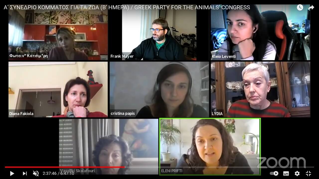 Ο Πρόεδρος του Κόμματος για τα Ζώα Κύπρου Κυριάκος Κυριάκου συνδέθηκε ζωντανά με το ZOOM του συνεδρίου και αφού χαιρέτισε, συνομίλησε ελεύθερα με τα μέλη του αδελφικού ελληνικού κόμματος.
