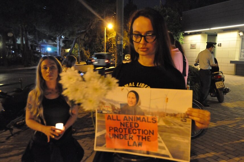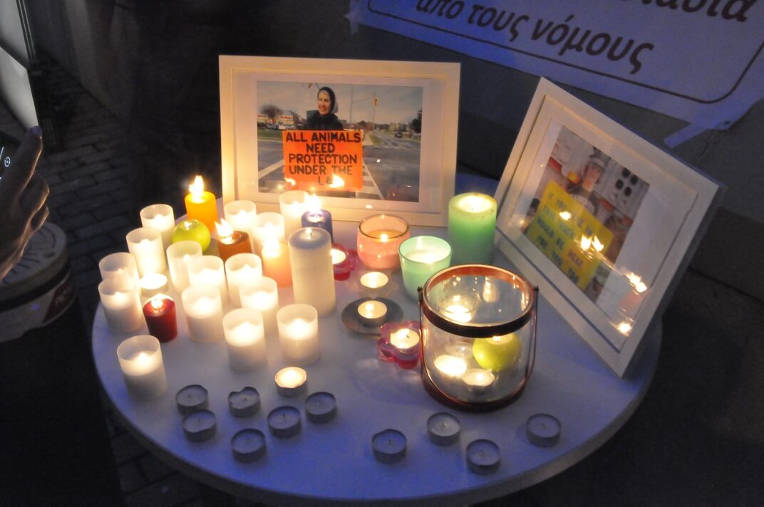 Οι συγκεντρωμένοι ανταποκρίθηκαν στην πρόσκληση του Κόμματος για τα Ζώα για να τιμηθεί η μνήμη της και να εκφρασθεί η αποφασιστικότητα των φιλόζωων «να μην σβήσουν τα κεριά που άναψε στις συνειδήσεις των ανθρώπων». Τα λουλούδια, τα κεριά και τα πλακάτ έξω από την πρεσβεία μαρτυρούν πως ο αγώνας των φιλόζωων, των οικολόγων, των φυτοφάγων συνεχίζεται.
