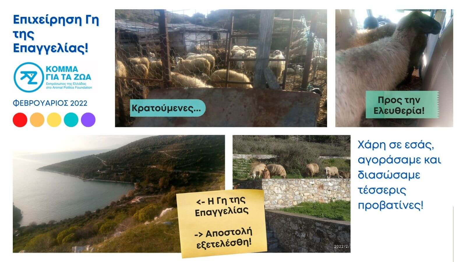 Το Κόμμα για τα Ζώα αγοράσαμε και διασώσαμε τέσσερις προβατίνες.
