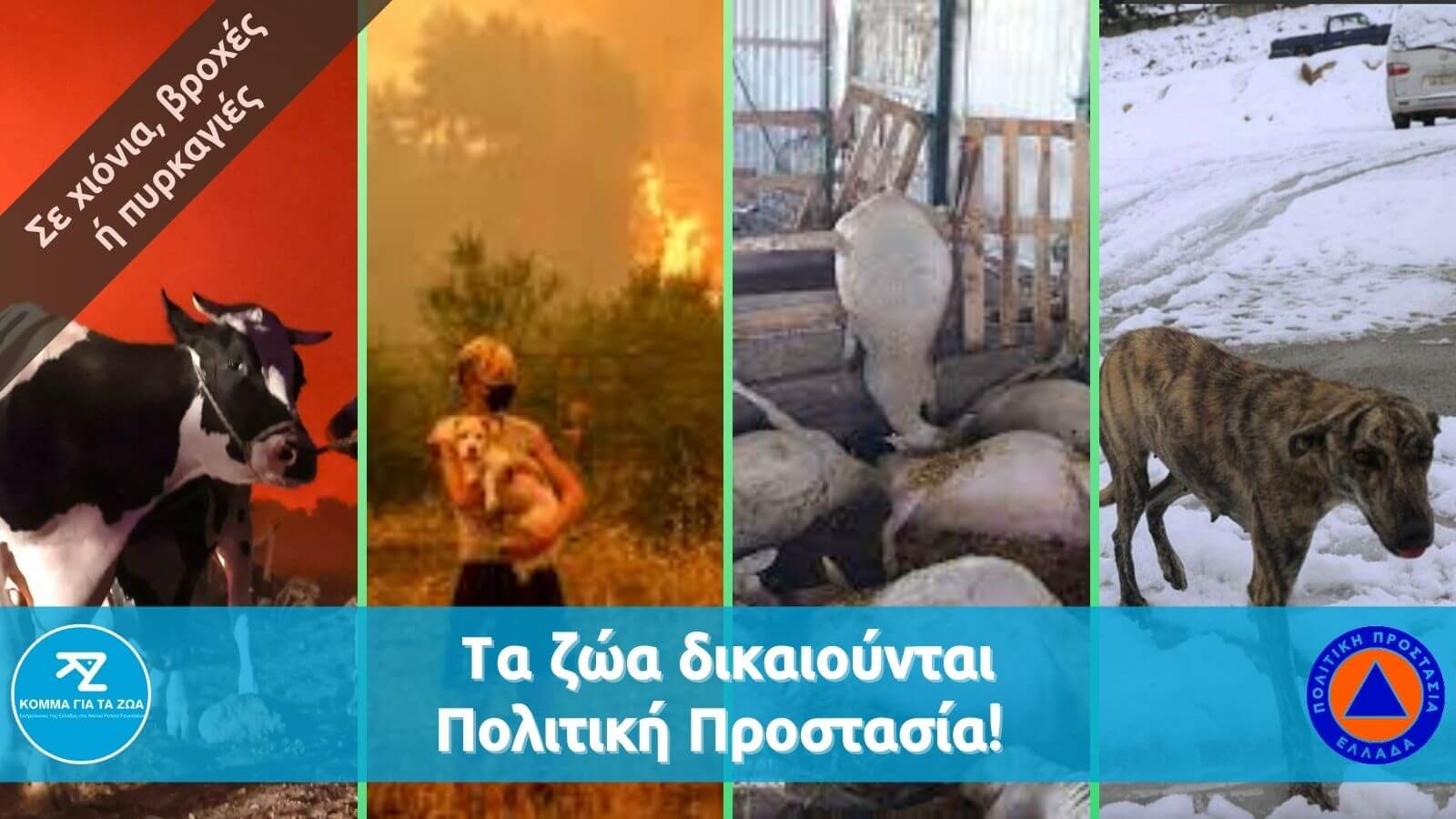 Το ελληνικό Κόμμα για τα Ζώα ζητάει να συμπεριληφθεί οργανωτικά και επιχειρησιακά η προστασία όλων των ζώων στην Πολιτική Προστασία.