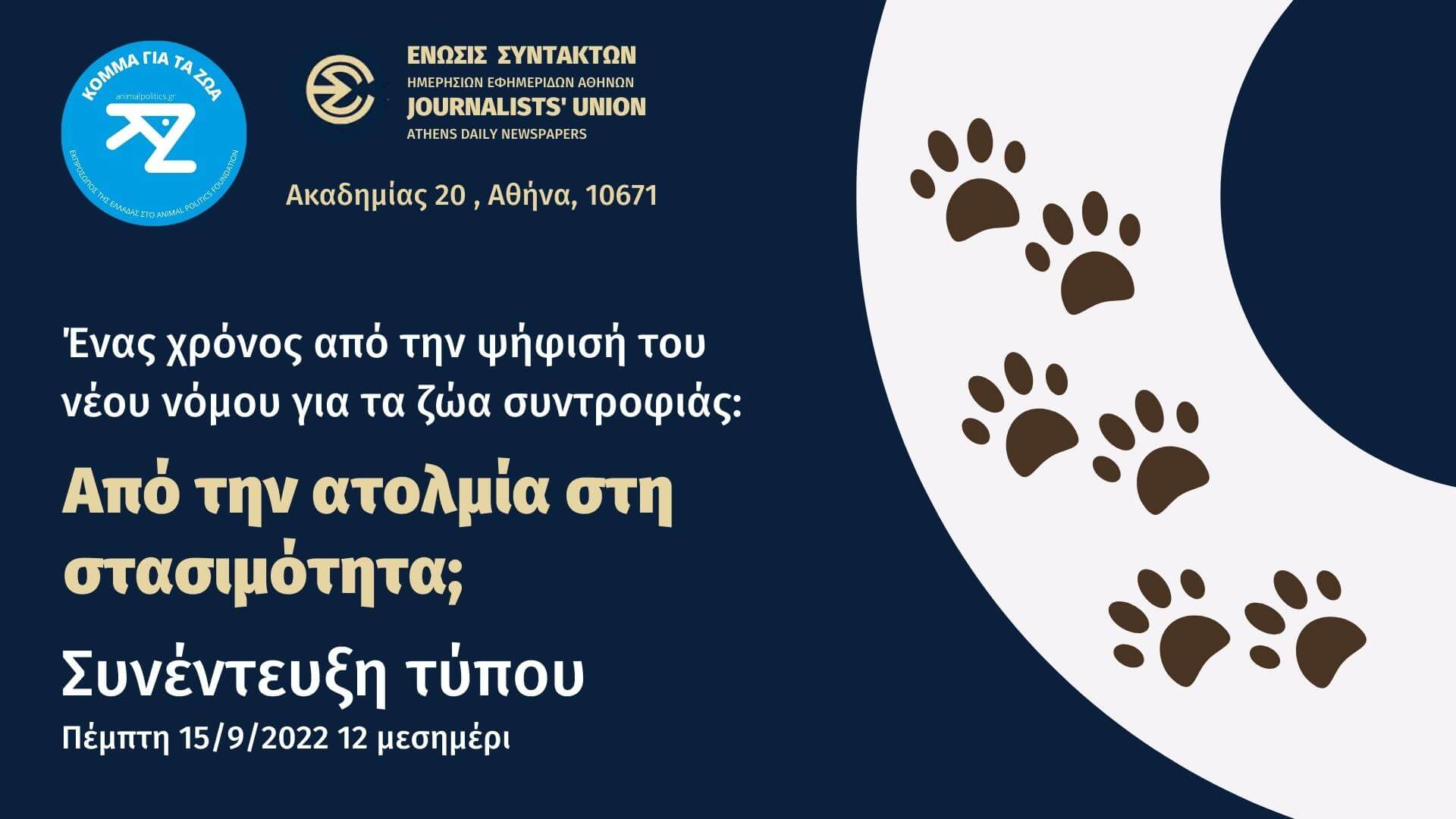 Με την ευκαιρία της επετείου ενός έτους από την ψήφιση του νέου νόμου για τα ζώα συντροφιάς, το ΚΓΤΖ πραγματοποιεί δημόσιο απολογισμό