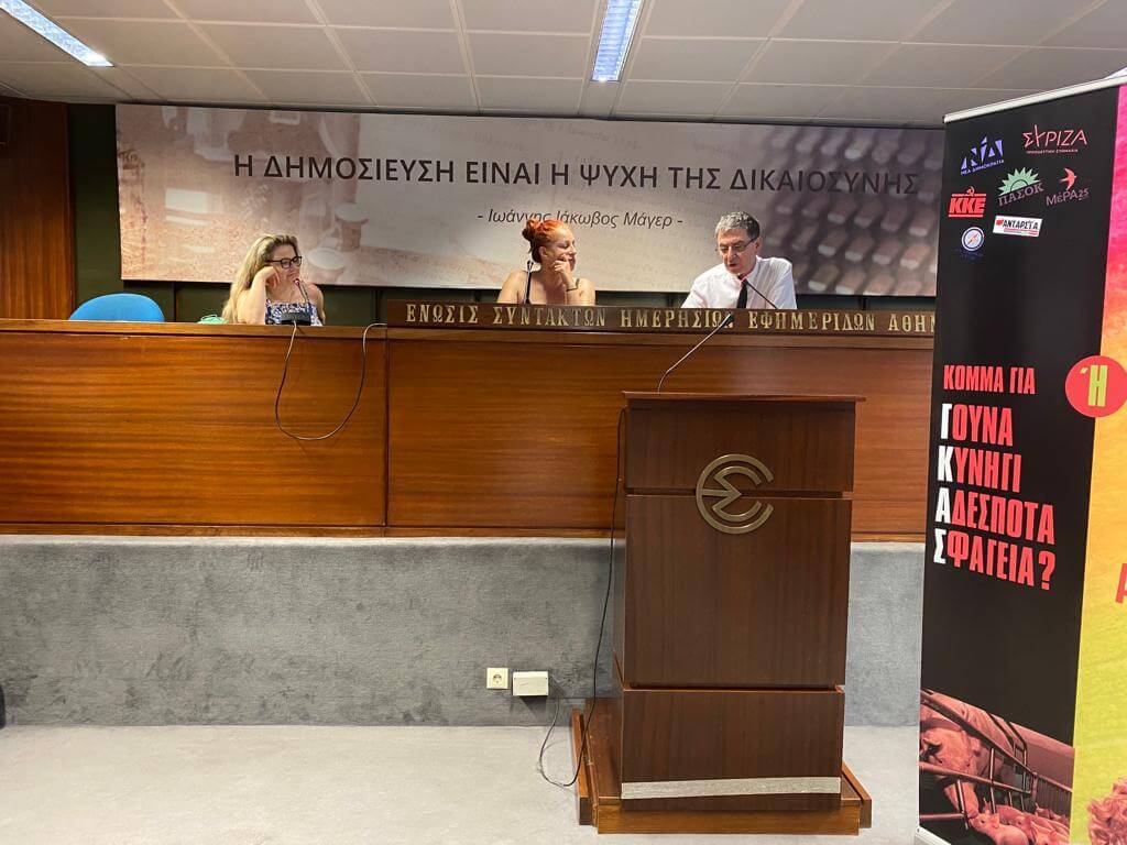 Η εκδήλωση που διοργάνωσε το Κόμμα για τα Ζώα στην ΕΣΗΕΑ για να συζητηθεί η εμπειρία από τον ένα χρόνο της πλημμελούς εφαρμογής του νέου νόμου για τα ζώα συντροφιάς.