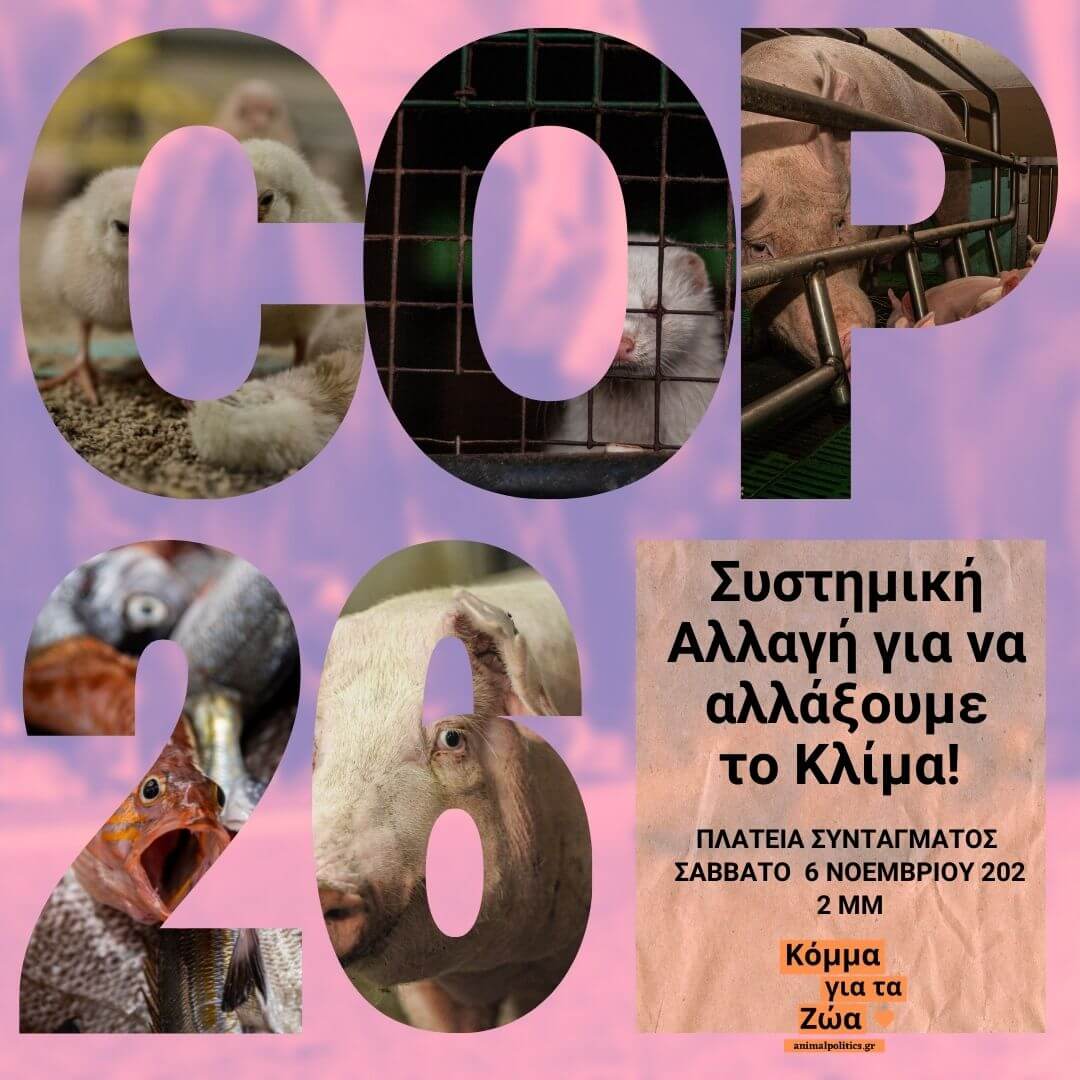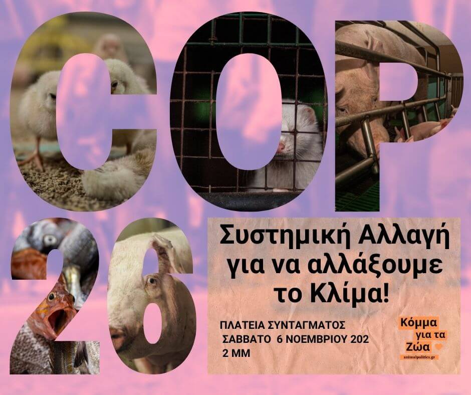 Το Σάββατο 6 Νοεμβρίου 2021, στις 2 μ.μ. θα βρεθούμε στην Πλατεία Συντάγματος, στο συντριβάνι εμπρός από την έξοδο του μετρό, για να συμμετέχουμε ως Κόμμα για τα Ζώα στην Παγκόσμια Ημέρα Δράσης για το Κλίμα, που θα διεξαχθεί ταυτόχρονα στην Αθήνα και σε εκατοντάδες άλλες πόλεις σε όλο τον κόσμο.