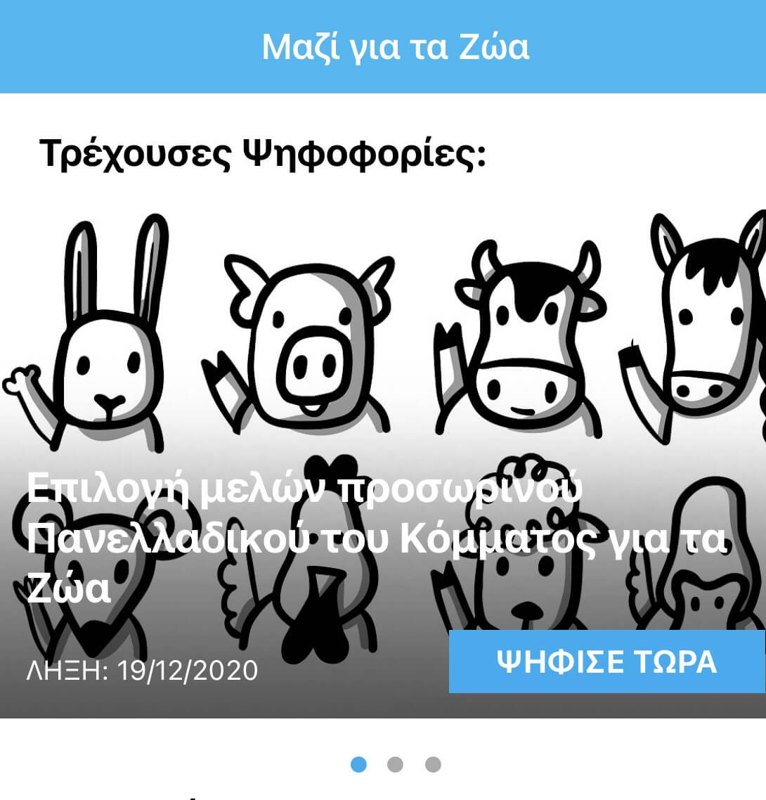 στο επάνω μέρος της εφαρμογής Animal Politics