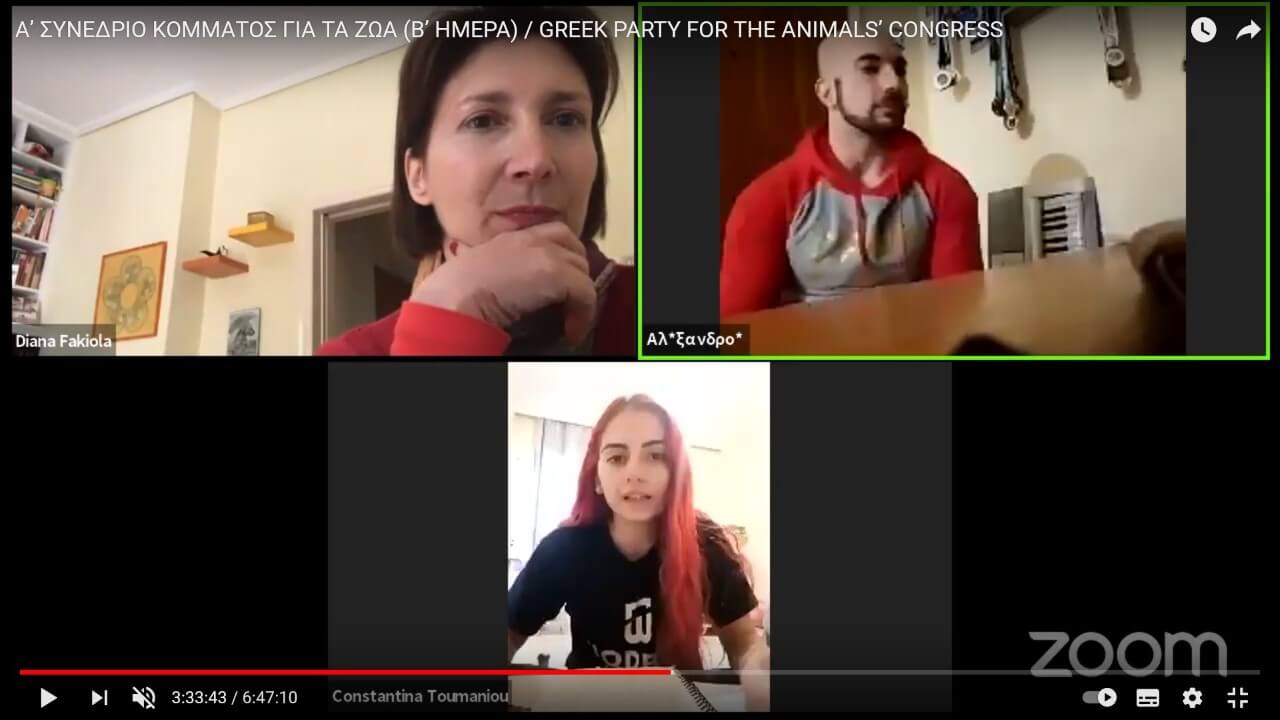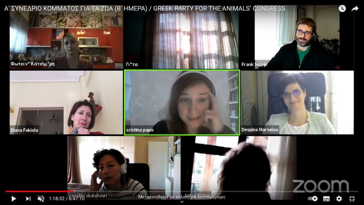Ο Πρόεδρος του Κόμματος για τα Ζώα Κύπρου Κυριάκος Κυριάκου συνδέθηκε ζωντανά με το ZOOM του συνεδρίου και αφού χαιρέτισε, συνομίλησε ελεύθερα με τα μέλη του αδελφικού ελληνικού κόμματος.