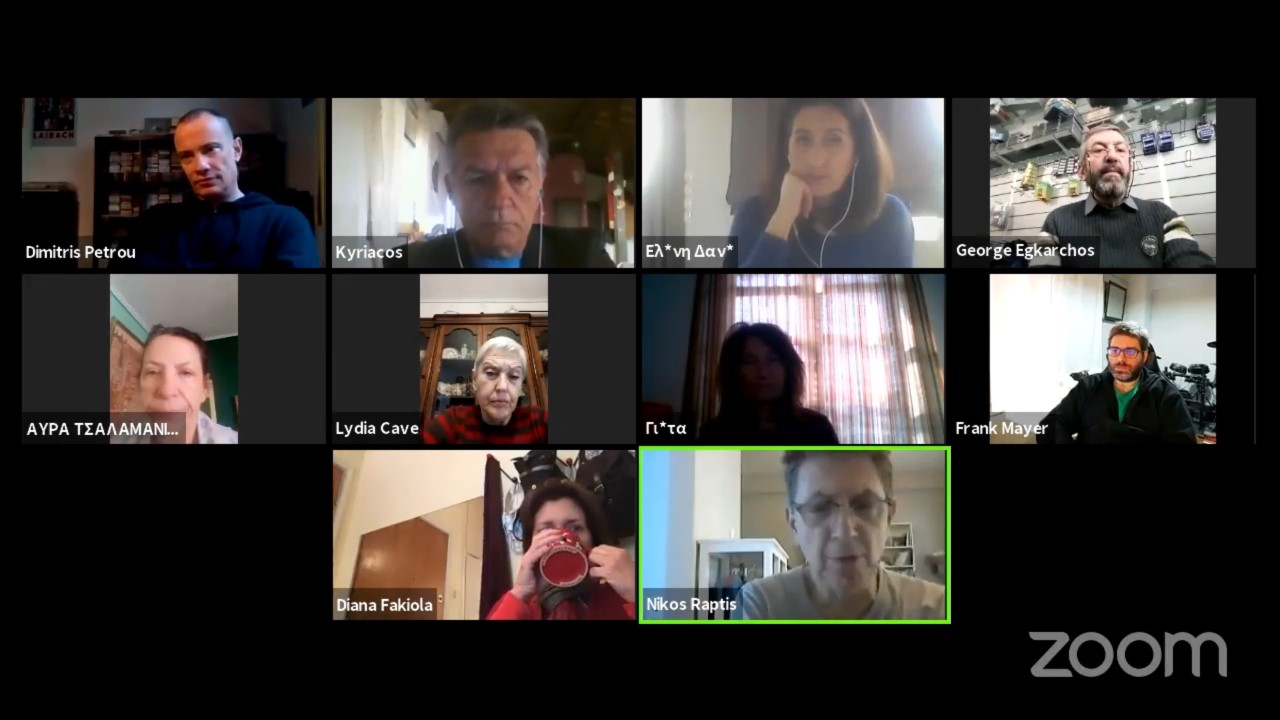Ντοκιμαντέρ «VEGAN 2020», χαιρετισμοί ΝΔ, ΣΥΡΙΖΑ, ΚΙΝΑΛ, ΜέΡΑ25, χαιρετισμός ΠΦΟ, κεντρική εισήγηση Νίκου Ράπτη και συζήτηση, παρουσίαση υποψηφίων για το Συντονιστικό.