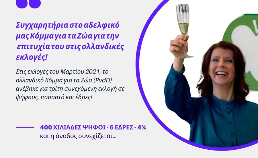 Οι σημαντικές εκλογικές επιτυχίες των φιλοζωικών κομμάτων στις πρόσφατες εκλογές στη Γερμανία και στην Ολλανδία, πιστοποιούν πως η Πολιτική Φιλοζωία ήρθε για να μείνει στην πολιτική.