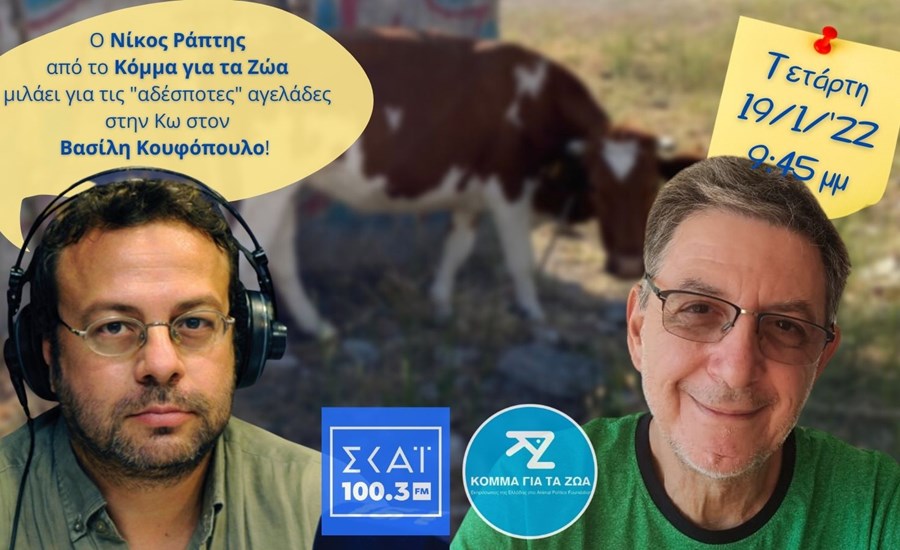 Η συνέντευξη του Νίκου Ράπτη (Κόμμα για τα Ζώα) στην εκπομπή του ΣΚΑΪ 100,3 "Στιγμιότυπα", με τον Βασίλη Κουφόπουλο, για την συστηματική κακοποίηση των αγελάδων στο νησί της Κω (vd)