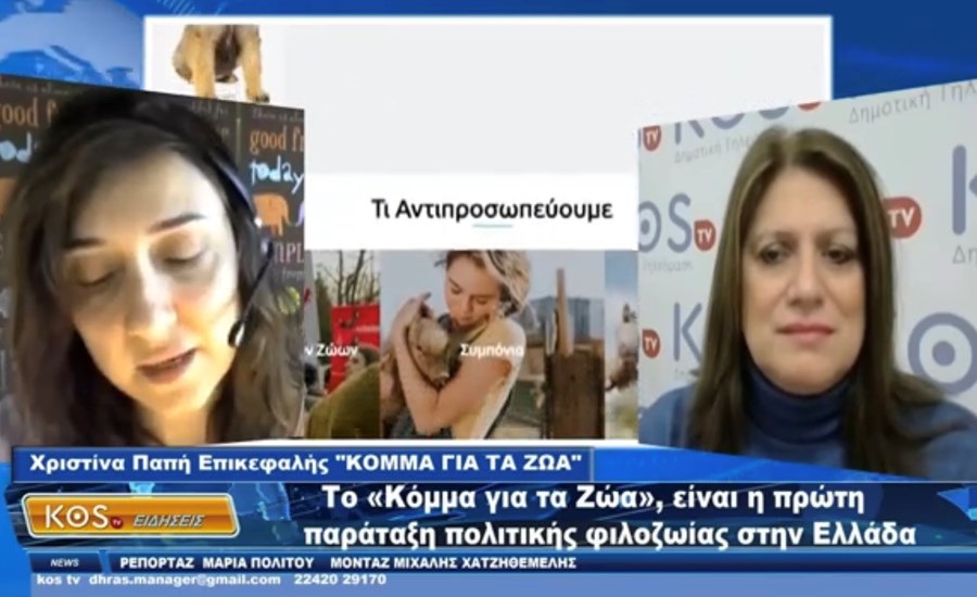 Η συνέντευξη της επικεφαλής του Κόμματος για τα Ζώα, της «πρώτης παράταξης πολιτικής φιλοζωίας στην Ελλάδα» στην Κos Tv Δημοτική Τηλεόραση Κω