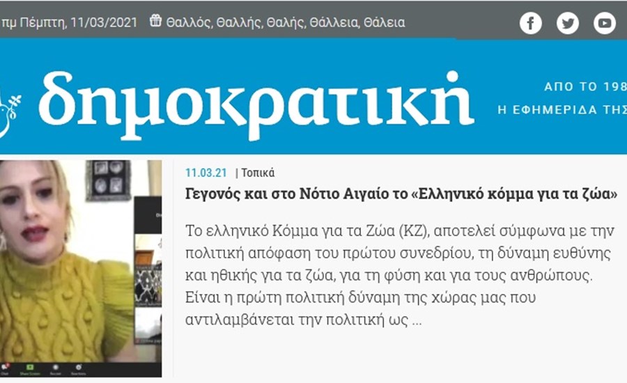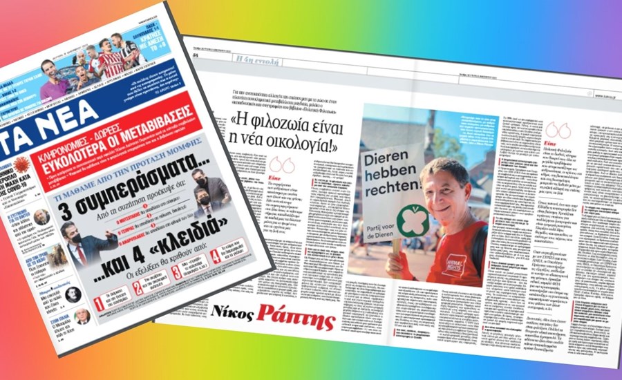 Συνέντευξη Νίκου Ράπτη για «Τα Νέα»: Η Φιλοζωία είναι η νέα Οικολογία
