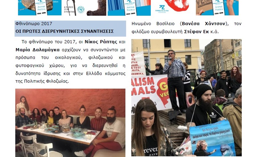 Ο Νίκος Ράπτης μιλάει στον Δημήτρη Μανιάτη για την Πολιτική Φιλοζωία, το τρίπτυχο «Απελευθέρωση των Ζώων»-«Φυτοφαγική Μετάβαση»-«Οικολογικός Μετασχηματισμός», την «Εθνική Κλιματική Ενότητα» και τις προοπτικές του ελληνικού Κόμματος για τα Ζώα